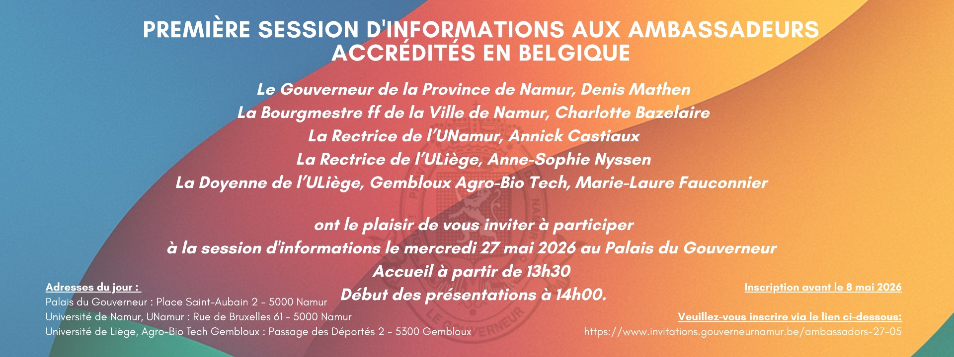 ont le plaisir de vous inviter à participer à la session d'informations le mercredi 27 mai 2026 au Palais du Gouverneur